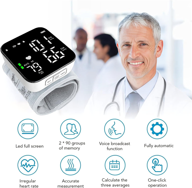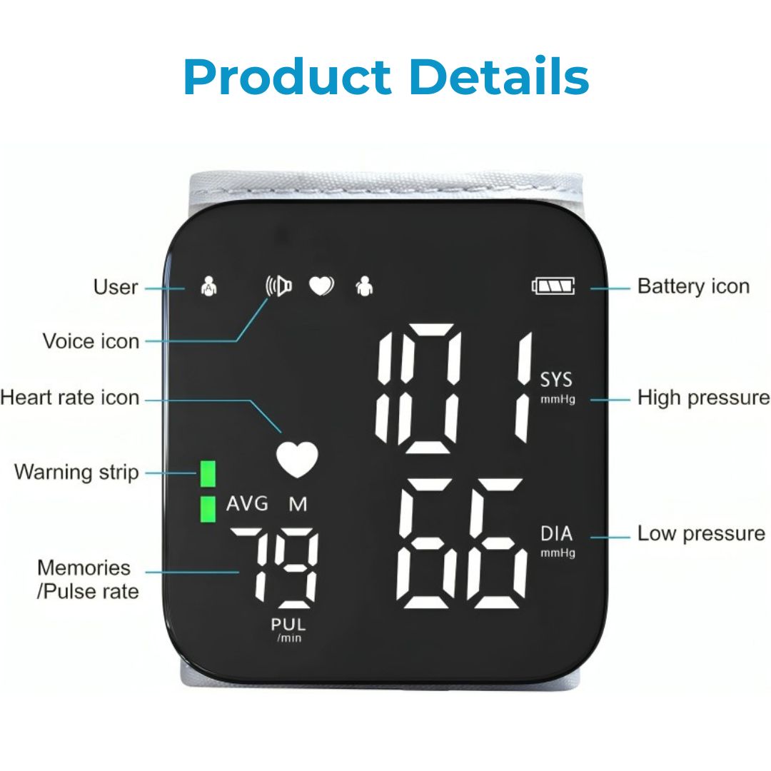 Mediwares Wrist Blood Pressure Monitor for Seniors – Automatic Digital BP Machine with Voice, LED Display, Portable & Easy to Use
